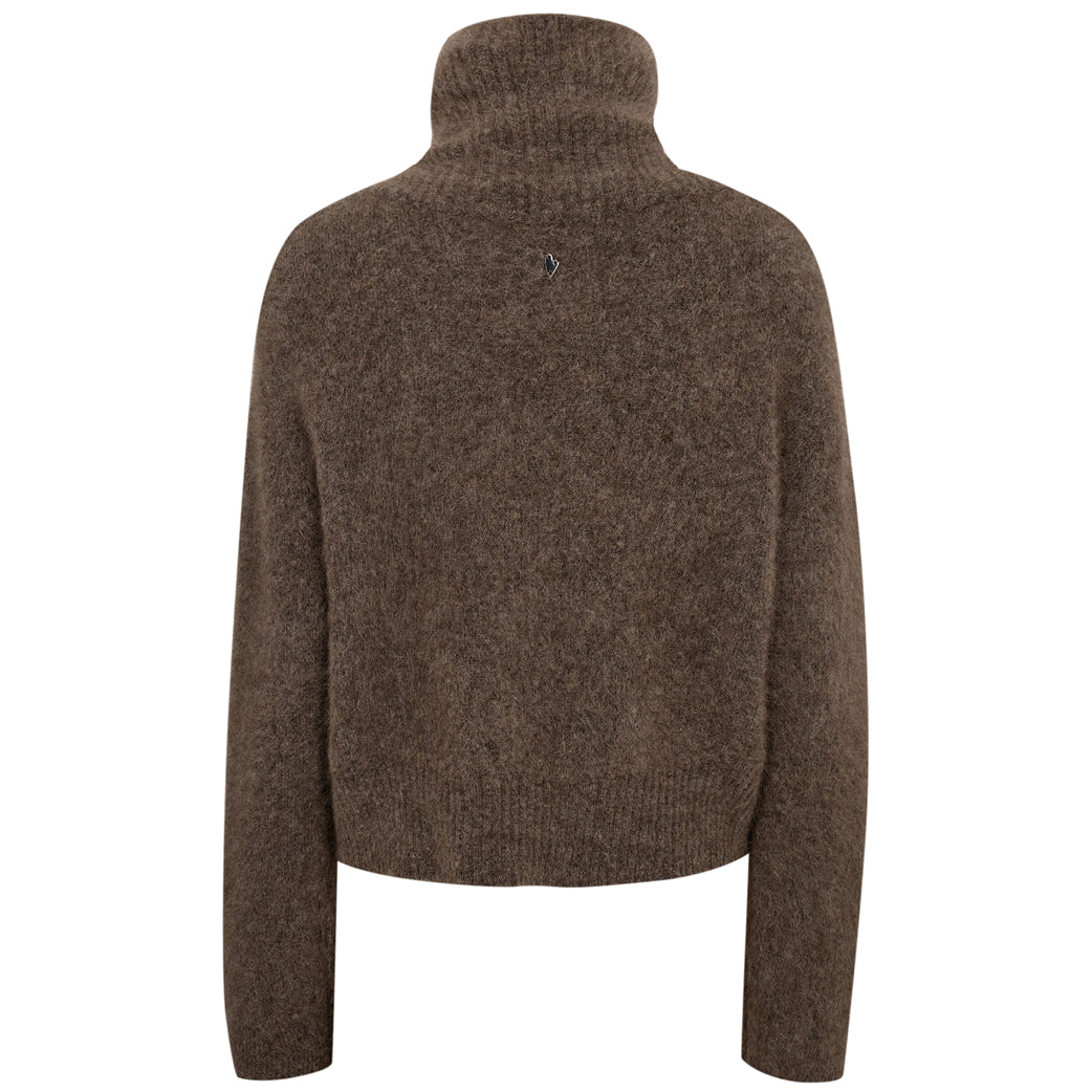Skøn strik fra Mos Mosh med høj hals og lynlåslukning lavet i blød mohair-uldblanding. Med fint lille emblem i nakken.