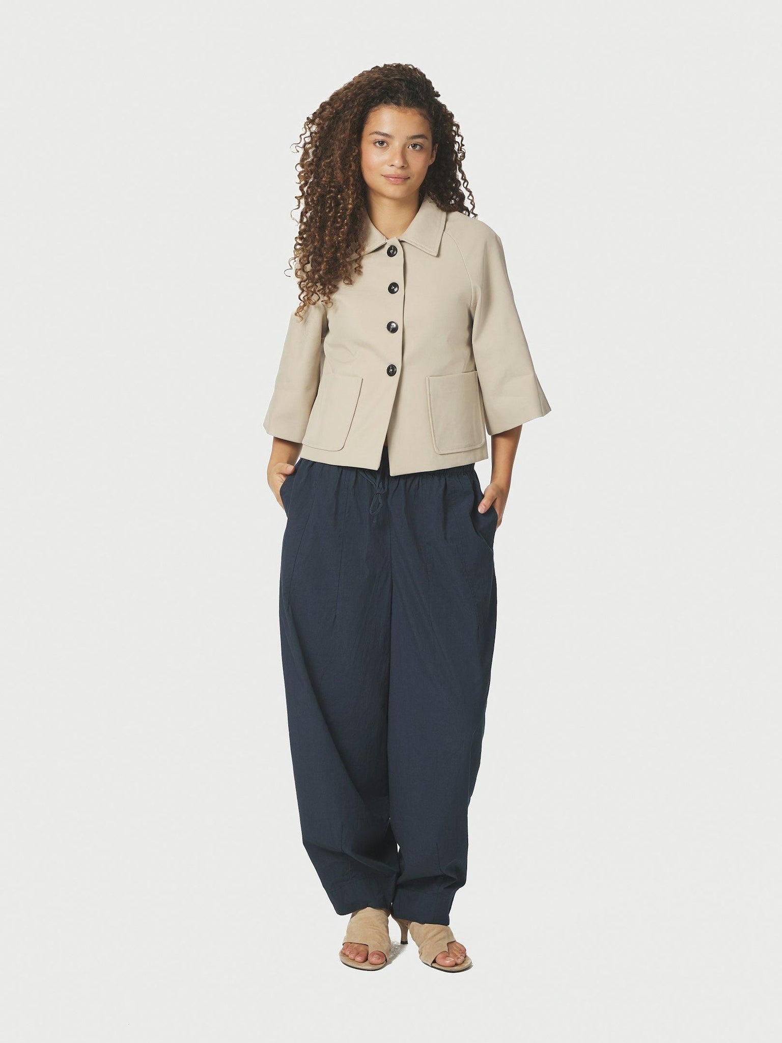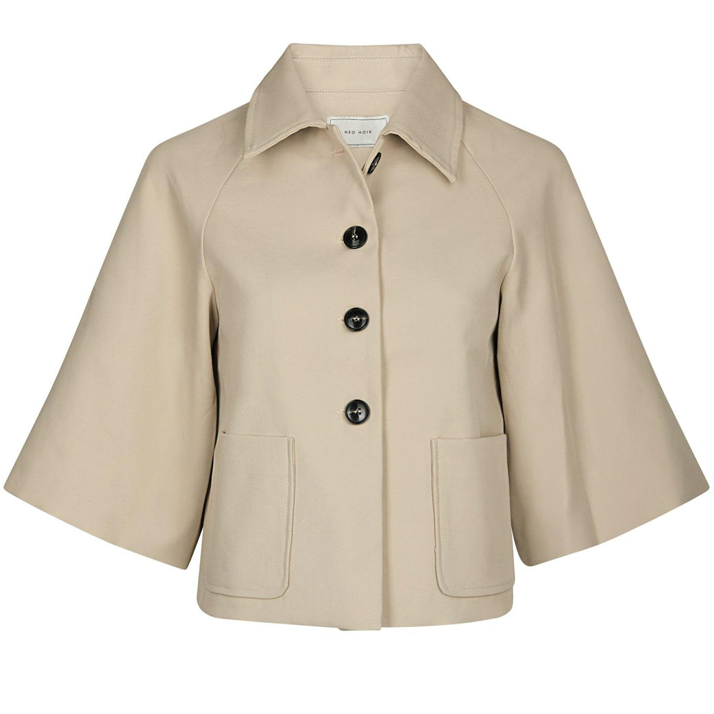 Elegant kort trenchcoat fra Neo Noir med trekvartlange ærmer, klassisk krave og knaplukning.