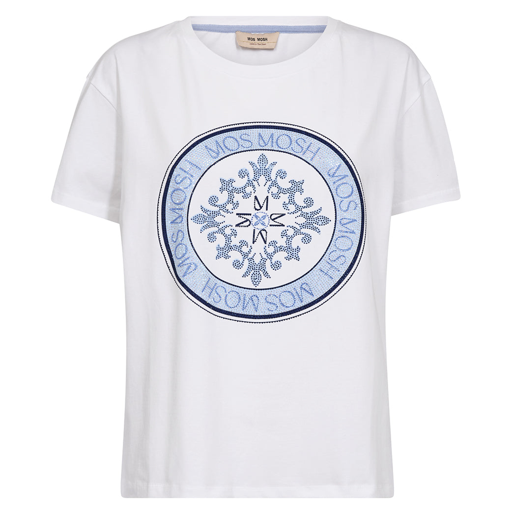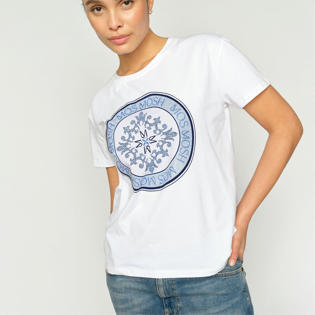 Flot-t-shirt med fint print fra Mos Mosh. Fremstillet i en lækker bomuld. Med rund v-udskæring.