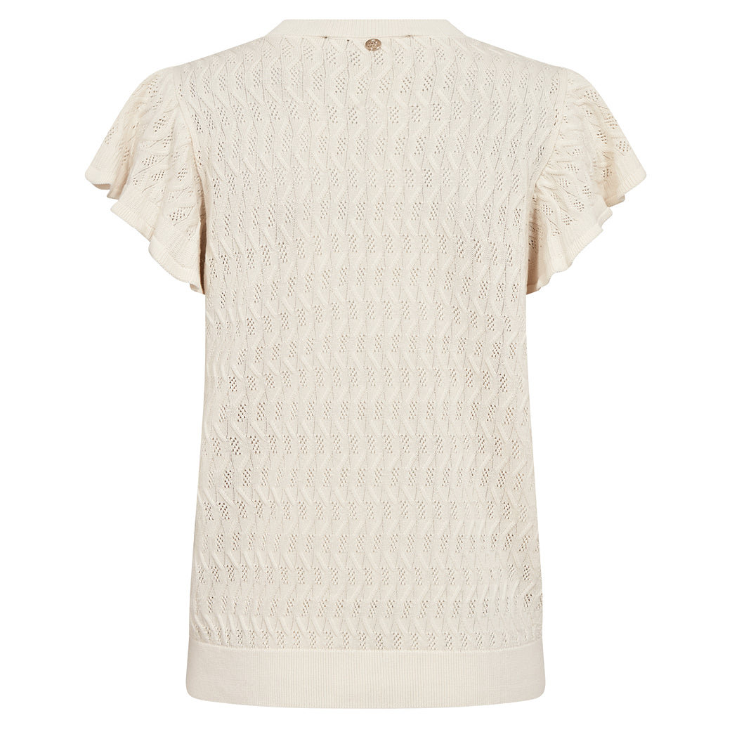 Super fin kortærmet strik fra Mosh Mosh med fine flæseærmer. Kan styles med det meste. Fin forårsstyle.