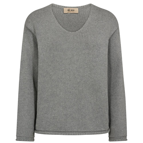 MOS MOSH Bine LS V-neck Knit Grey Melange