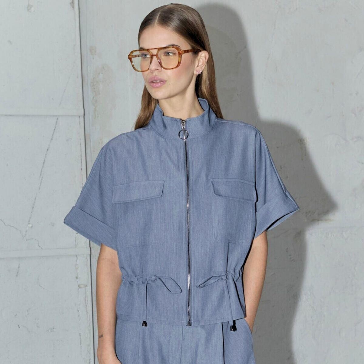 Farve: Dusty blue / Materiale: 26% viscose, 70% polyester, 4% elastan