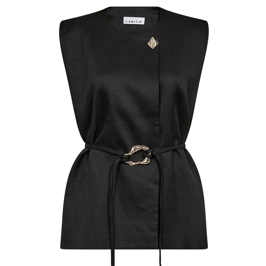 Flot vest fra Haute L'amitie med smukt guldspænde i taljen og smuk guldknap foroven. Perfekt til både hverdag og fest.