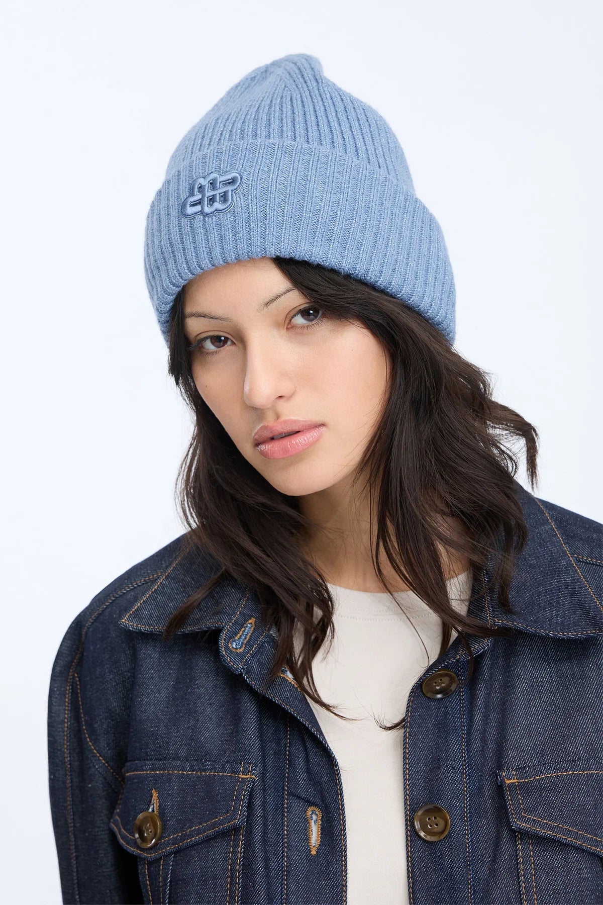 Lækker og blød ribstrikket hue med fint Munthe emblem.